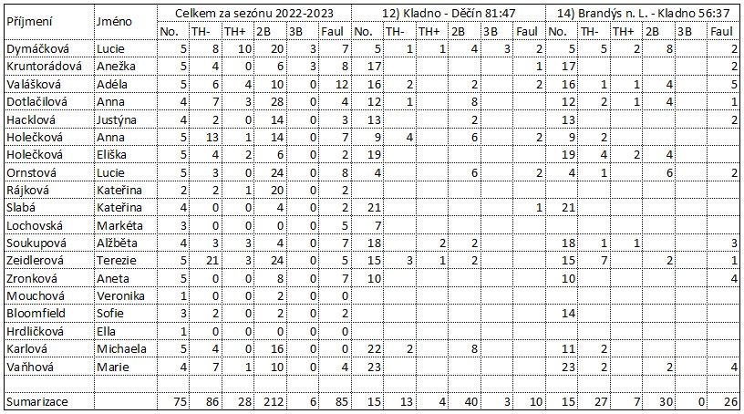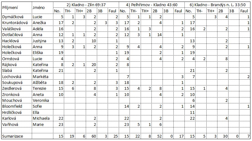 Do třetího utkání jsme nastupovali proti Brandýsu n. L., který se nám v rámci kvalifikačních zápasů o postup na MČR podařilo vyřadit – Kvalifikace o národní finále U13 s Brandýsem nad Labem 21.1.2023 a 22.1.2023 – Sokol Kladno Basketbal (basketkladno.cz). Utkání bylo dlouho vyrovnané. První čtvrtina skončila 10:14, druhá čtvrtina 22:28. Bohužel ve třetí čtvrtině získaly brandýské Berušky 14 bodový náskok 26:40, který se nám v poslední čtvrtině již nepodařilo stáhnout. Utkání skončilo naší prohrou 33:50.