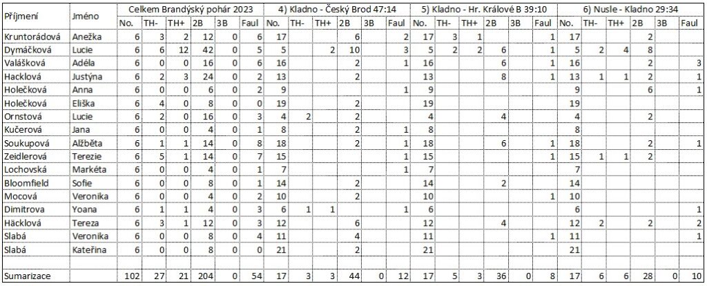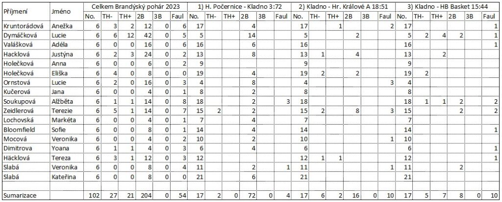 Všechny hráčky odevzdaly v turnaji hodně sil i bojovnosti. A všem patří dík za skvělou reprezentaci kladenského basketbalu na Brandýském poháru. Nejužitečnější hráčkou týmu byla vybrána Terka Zeidlerová.