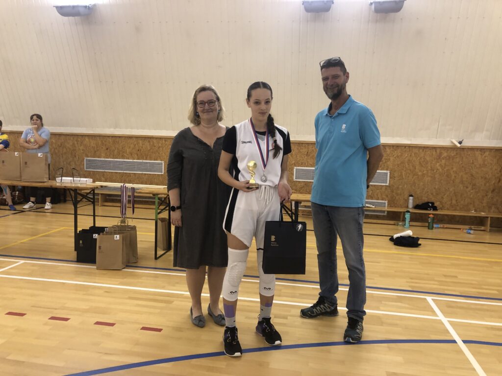 Sobotní večer se konaly dovednostní soutěže. V nich jsme uspěli na třikrát. Nejprve se našim dívkám ve složení Lucie Dymáčková, Anna Holečková, Anežka Kruntorádová a Aneta Zronková povedlo nastřílet nejrychleji 5 x 5 střel ze střední vzdálenosti. Čas, tuším 2:31, byl nejrychlejší ze všech šesti družstev. Do další dovednostní soutěže, do fyzicky náročné pětiminutové hry 2 na 2, se přihlásily za TJ Sokol Kladno Sofie Bloomfield a Eliška Holečková. Sofii se s její spoluhráčkou z prvního kola nepovedlo probojovat do finále, Elišce a její spoluhráčce ano. Ve finále byla Eliška Holečková se svou brandýskou spoluhráčkou Simonou Novotnou úspěšná a podařilo se jim své protihráčky přehrát. Ve třetí dovednostní soutěži – opičí dráze – jsme měli dvě želízka v ohni, Sofii Bloomfield a Alžbětu Soukupovou, která obhajovala loňské vítězství – viz též článek Turnaj O pohár starosty města Bystřice 26.-28.5.2023 – Sokol Kladno Basketbal (basketkladno.cz). A jak to dopadlo? Obě hráčky se probojovaly do finále této dovednostní soutěže. O necelou vteřinu vyhrála Bětka před Sofi. Klobouk dolu před takovým výkonem. Pak tu byly ještě dvě soutěže, a to ve střelbě šestek (vyřazovačka) a driblink slabší rukou s pinkáním druhé ruky do nafukovacího balonku, kde jsme neuspěli. Nicméně gratulace všem úspěšným účastnicím dovednostních soutěží.