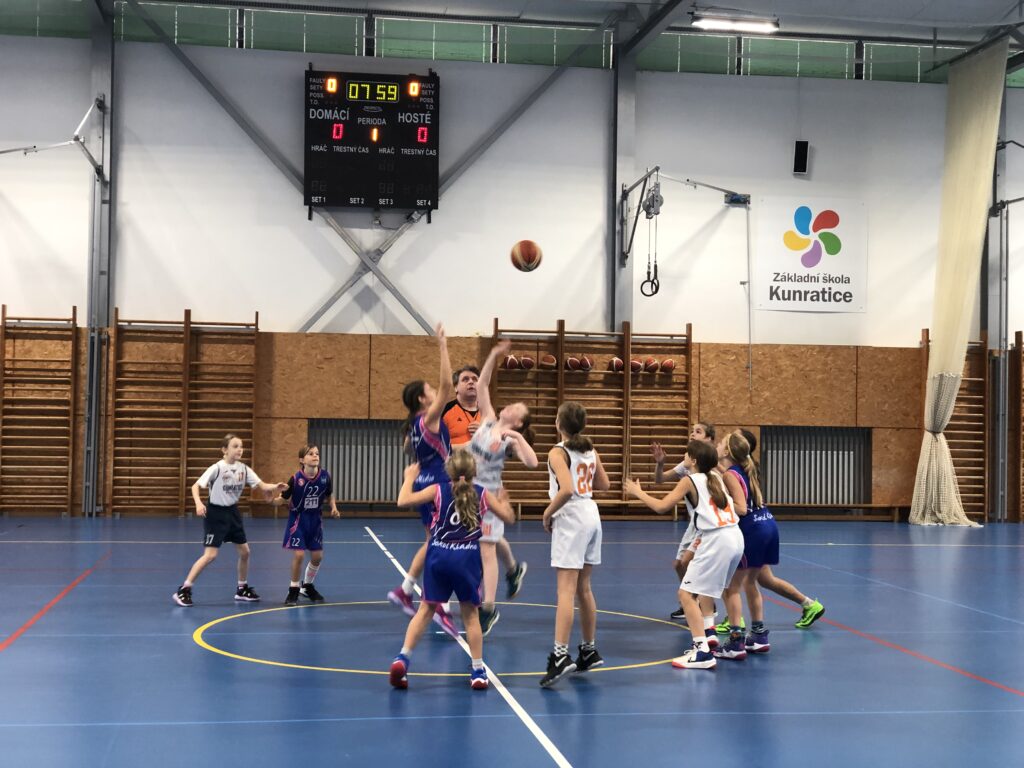 Před podzimními prázdninami jsme zavítali do krásné multifunkční školní haly v Kunraticích. Ve velmi přátelské atmosféře jsme odehráli dvě plnohodnotná utkání. Byť jsme měli čtyři hráčky na prázdninách a tři hráčky nám těsně před utkáním onemocněli, bez skrupulí je zastoupily hráčky U11. První utkání jsme hráčky U12 doplnili rovnoměrně hráčkami U11. Protože obě družstva měla ve svých sestavách hráček 2013 a 2014 (a ml.) plus mínus nastejno, tak jsme se pro druhé utkání domluvili s trenéry domácího družstva, že si proti sobě po čtyřech minutách zahrají hráčky U12 a po dalších čtyřech minutách hráčky U11. A bylo to jen ku prospěchu basketbalu, všechny hráčky si zahrály proti stejně zkušeným vyrovnaným soupeřkám.